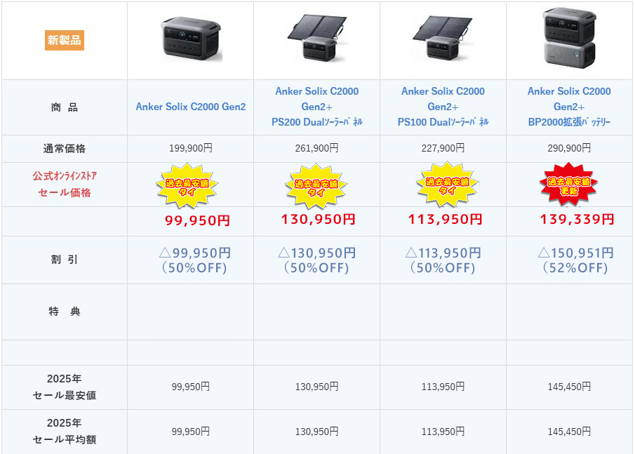 2025年に開催されたセールの「最安値」や「平均価格」と比較しながらご覧いただくことで、現在の価格がお得かどうか判断しやすくなっています