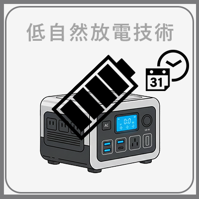 100%残量で1年間放置しても自然放電はわずか5%程度なので、防災の備えに適しています