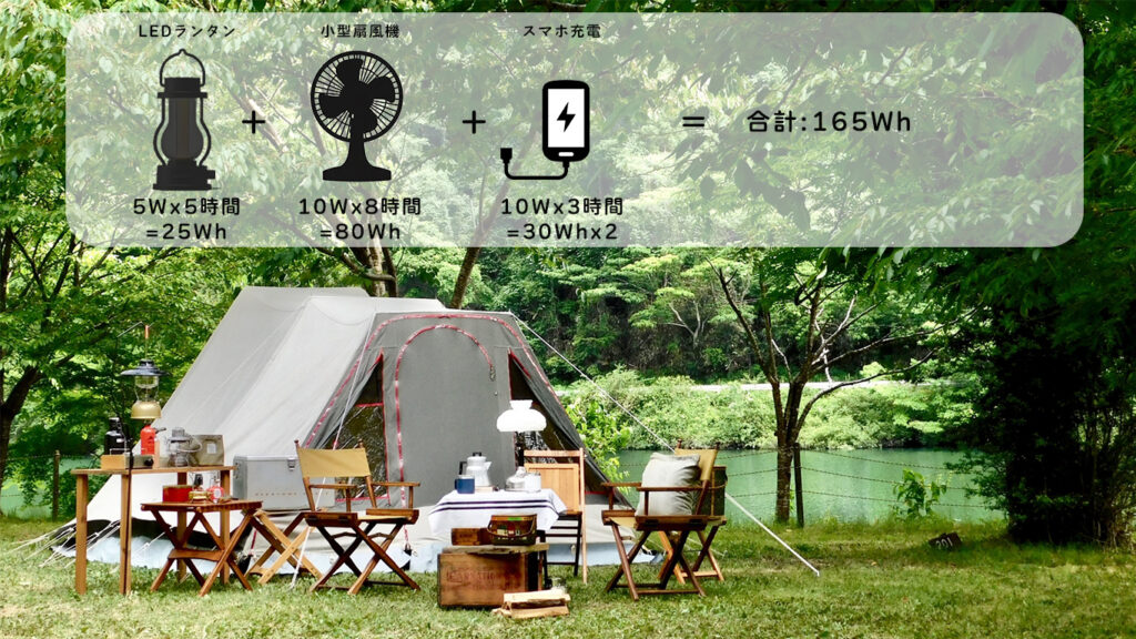 | 春夏 | LEDランタン(5W) | 共用 | 5時間 | 25Wh | 165Wh |