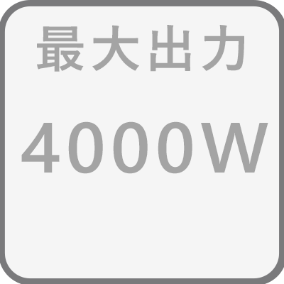 定格出力2000W、最大出力4000Wと超高出力!起動時に大きな電力が必要なモーターやコンプレッサーを使う家電も、難なく使えます。定格出力が高いので、電力ブースト機能に頼らず、家電が持つ100%の性能を引き出しながら、場所を選ばずパワフルで快適に使えます