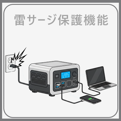 最大3000Vまでのサージ(過電圧)電流を受け止め、吸収または迂回させることで、ポータブル電源本体と接続された家電を守ります