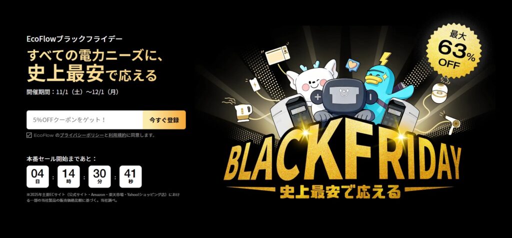ブラックフライデーは、信頼と実績のある主要メーカーのポータブル電源を安く手に入れる絶好のチャンスです。