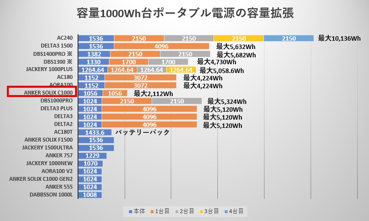 4) Anker Solix C1000と、他ポータブル電源の「拡張性」比較