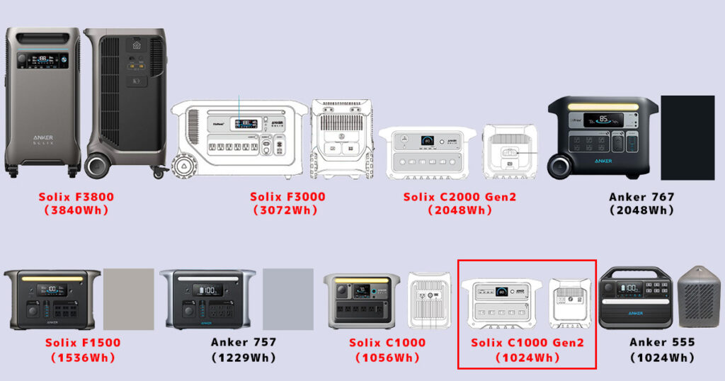 Anker Solix C1000 Gen2と他ポータブル電源をビジュアルで比較したい!
