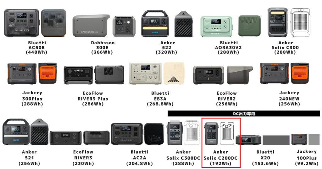 他ポータブル電源と、Anker Solix C200DCのビジュアル比較