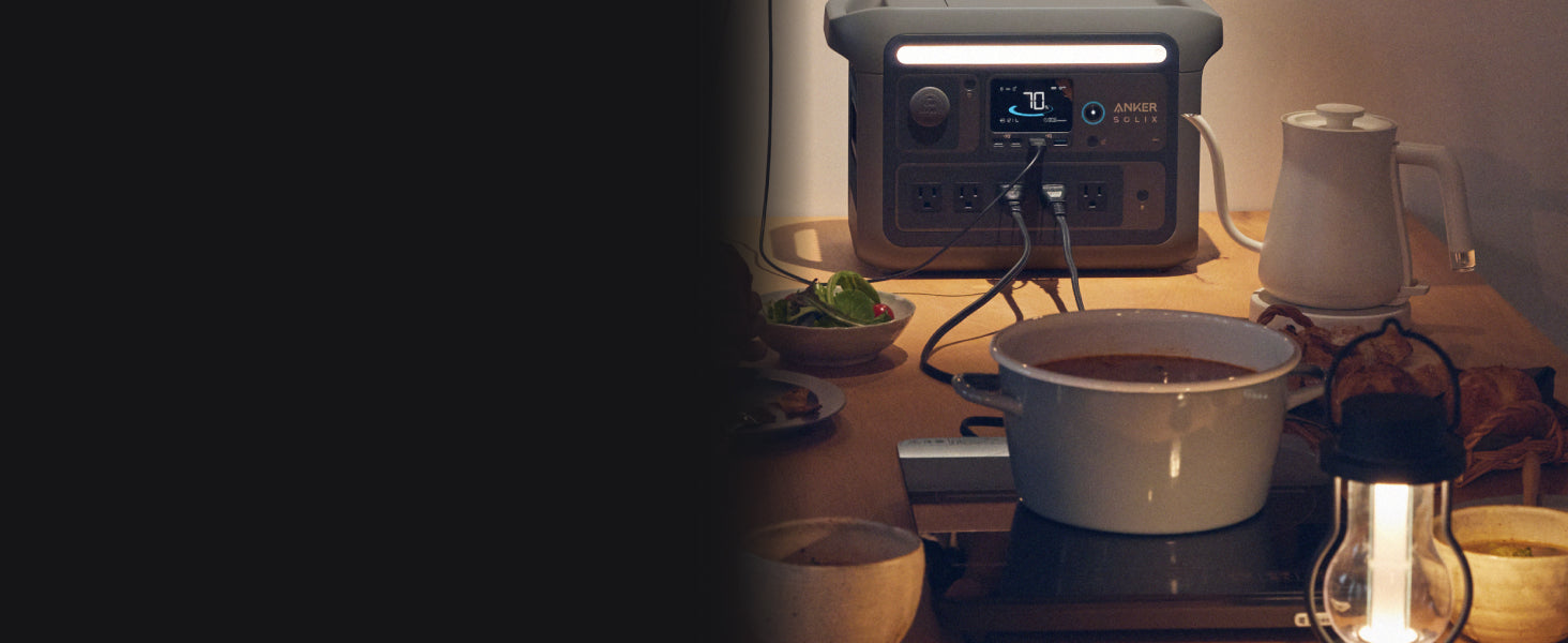 Anker Solix C800/800Plusは、キャンプや車中泊に最適な中容量モデルです。コンパクトながら1200Wの高出力で、電気ケトルやドライヤーも使用可能。ソーラーパネルやシガーソケットからの充電にも対応し、屋外での電源確保も安心です。別売りの専用防塵防水バッグを使えば、急な天候変化も気にせず使えます。また、Anker Solix C800は天面の蓋の中のスペースに充電ケーブルなどを収納できる設計で、Anker Solix C800 Plusには充電式のキャンプライト2つと最大100cmまで伸縮可能なポールが収納されています。