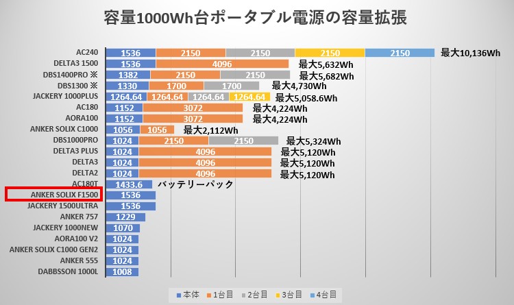 4) Anker Solix F1500と、他ポータブル電源の「拡張性」比較