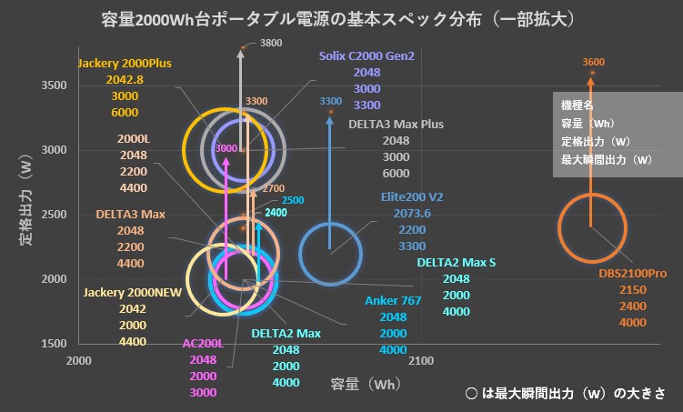 容量2000Wh台ポータブル電源 他社製品との詳細比較