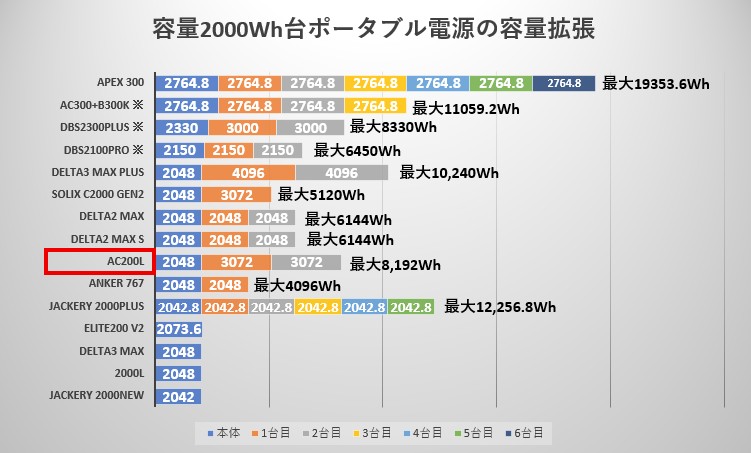4) Bluetti AC200Lと、他ポータブル電源の「拡張性」比較