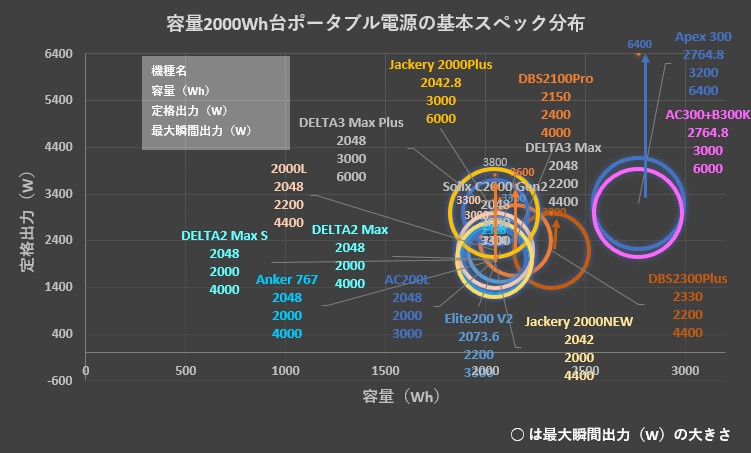 容量2000Wh台ポータブル電源 他社製品との詳細比較