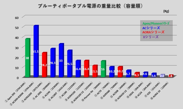 2) Bluetti Pioneer Naと、他ポータブル電源の「重量」比較