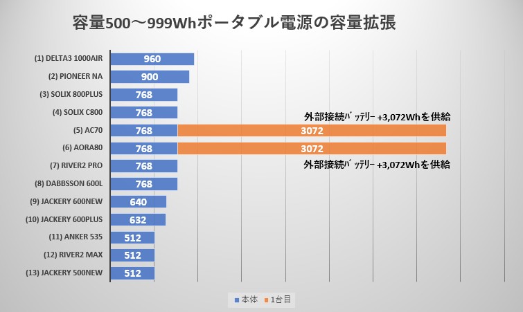 ① Bluetti Pioneer Naと、容量500~999Whポータブル電源の「重量」比較