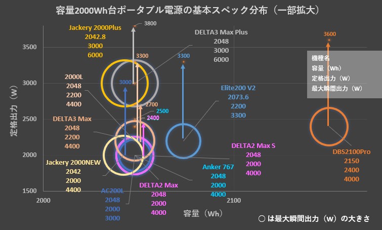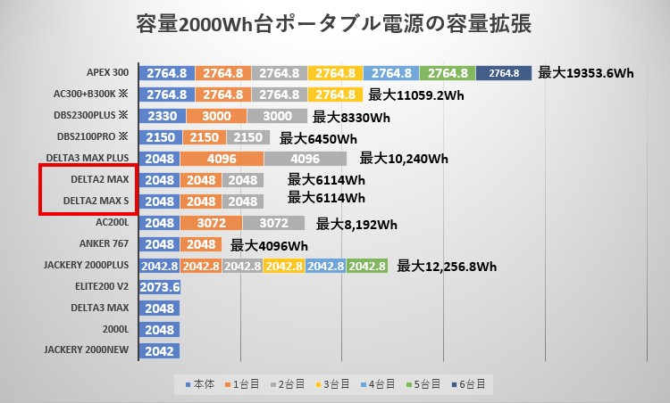 【容量2000Wh台のポータブル電源 サイズ比較】 DELTA2 Maxは表中のNo.8DELTA2 Max Sは表中のNo.9