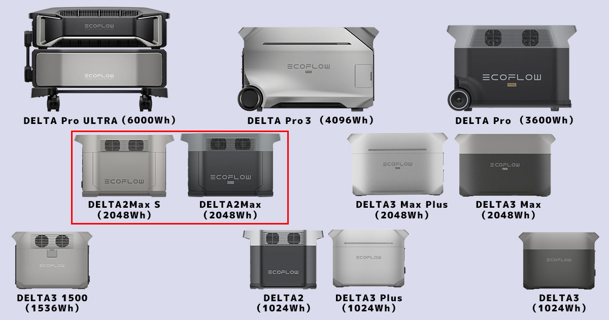 EcoFlow DELTA2 Max DELTA2 Max S は、容量(2,048Wh)とサイズが同じです。