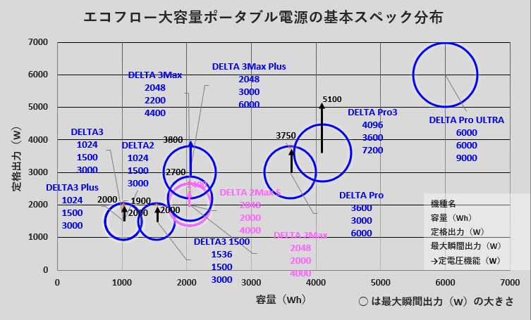 ピンク色の矢印で示されているのが、EcoFlow DELTA2 Max /DELTA2 Max S です。