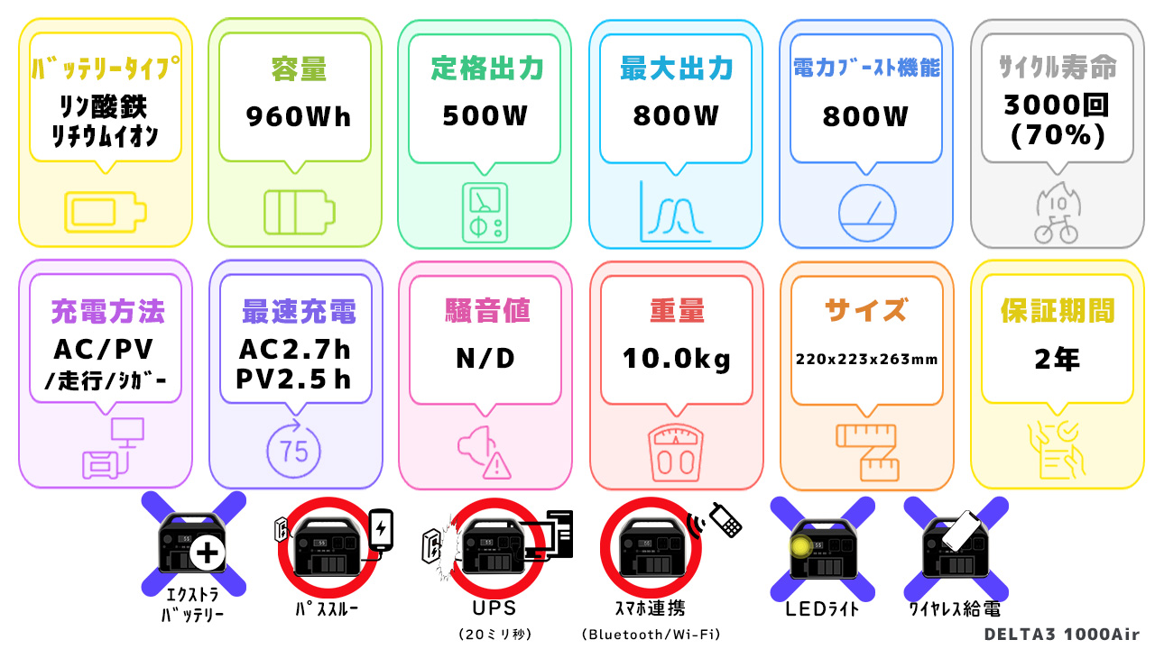 EcoFlow DELTA3 1000Airが、あなたのニーズに合った最高の1台なのか、購入を決める際の判断材料としてぜひお役立てください!