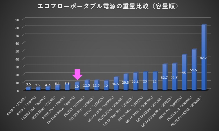 ● EcoFlow DELTA3 1000Airと他ポータブル電源をビジュアルで比較したい!