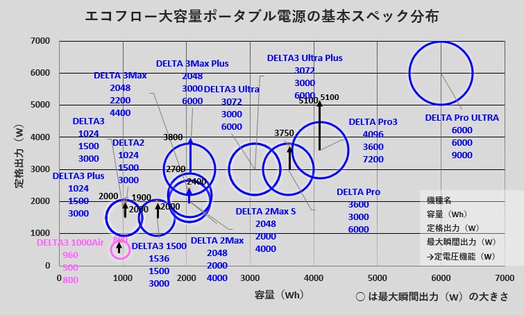 | 拡張バッテリー (最大容量) | なし | なし | なし | 外部バッテリー +3,072Wh | 外部バッテリー +3,072Wh | なし | なし | なし | なし | なし | なし | なし |