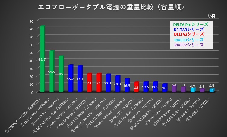 EcoFlow DELTA3 1000Airと他ポータブル電源をビジュアルで比較したい!