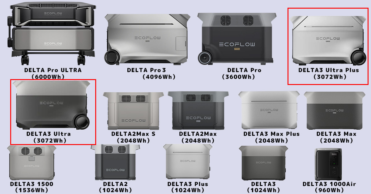 この記事では、EcoFlow DELTA3 UltraとDELTA3 Ultra Plusの違いに焦点を当てながら、エコフローの他モデルや他ブランドの大容量ポータブル電源との詳細な比較を交え、あなたの購入判断に役立つ情報を満載でお届けします。