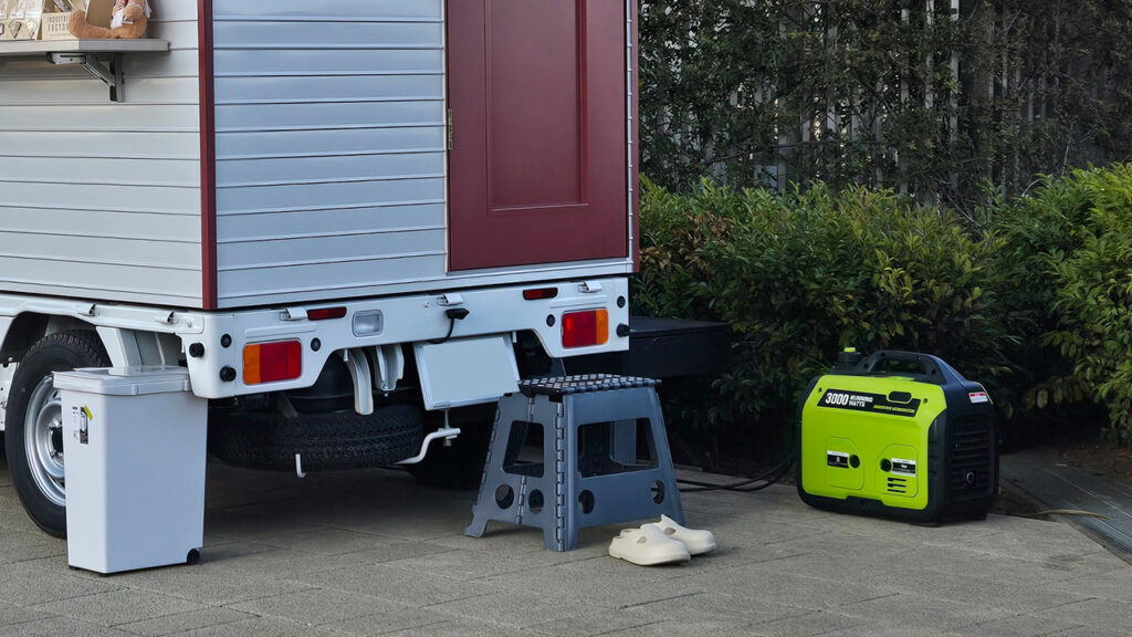 ✓ 早朝の「朝市・マルシェ」の電源(静かな時間帯でも、騒音を気にせずレジや照明を稼働)