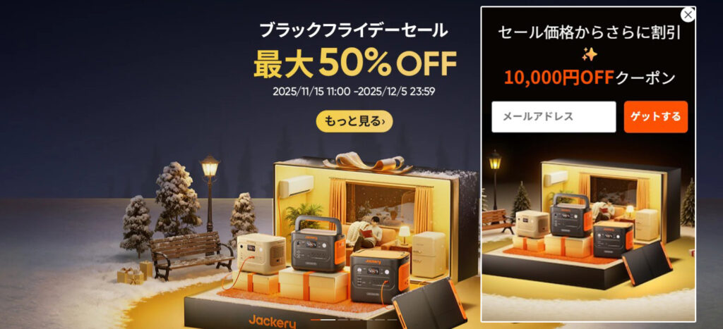 Jackery公式オンラインストアでは、毎月のようにセールが開催されています。