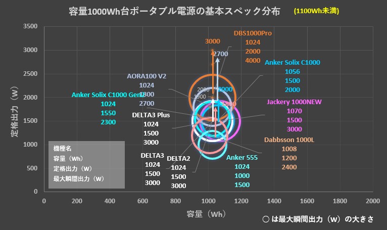 容量1000Whクラスの他社ポータブル電源との詳細比較を見たい!