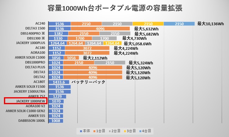 1000Wh以上ポータブル電サイズ比較 Jackery 1000NEW