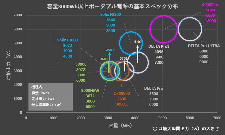容量3000Wh以上ポータブル電源 他社製品との詳細比較