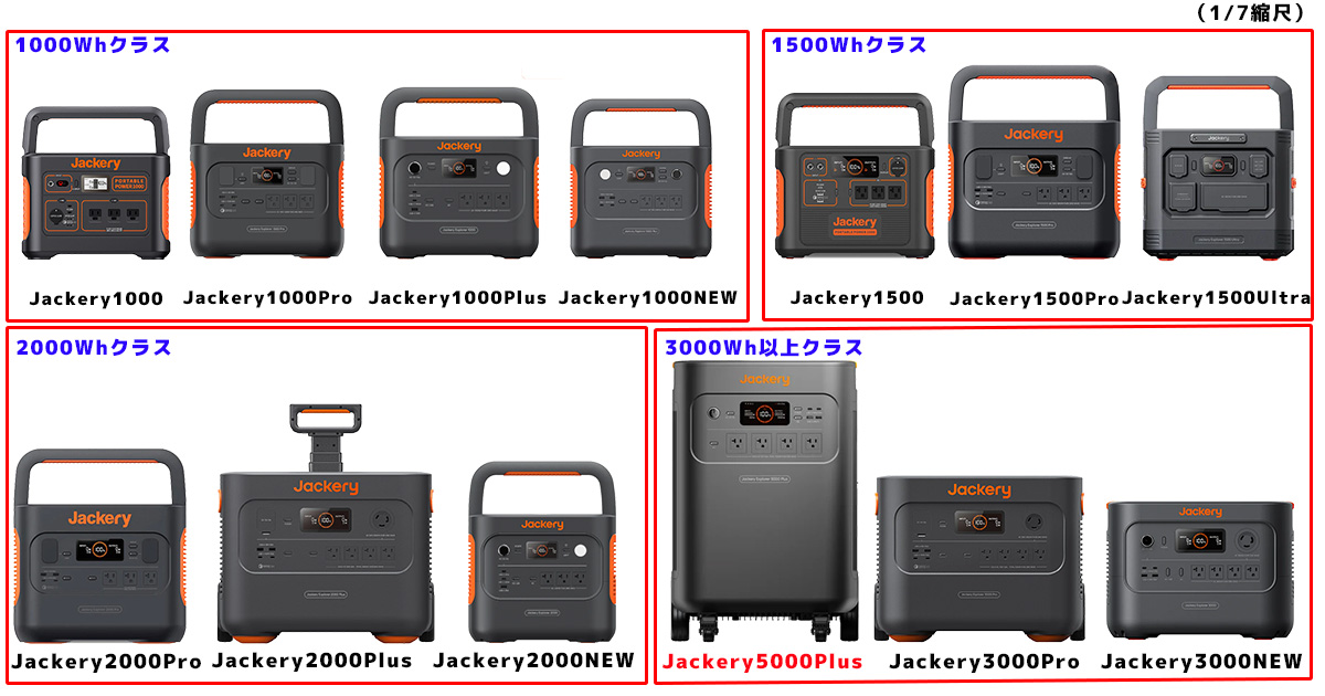 ② Jackery 5000Plusと、他ジャクリ大容量ポータブル電源の「サイズ」比較