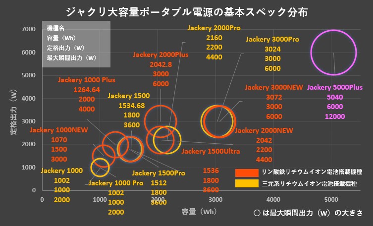3) Jackery 5000Plusと、他ポータブル電源の「容量・出力」比較