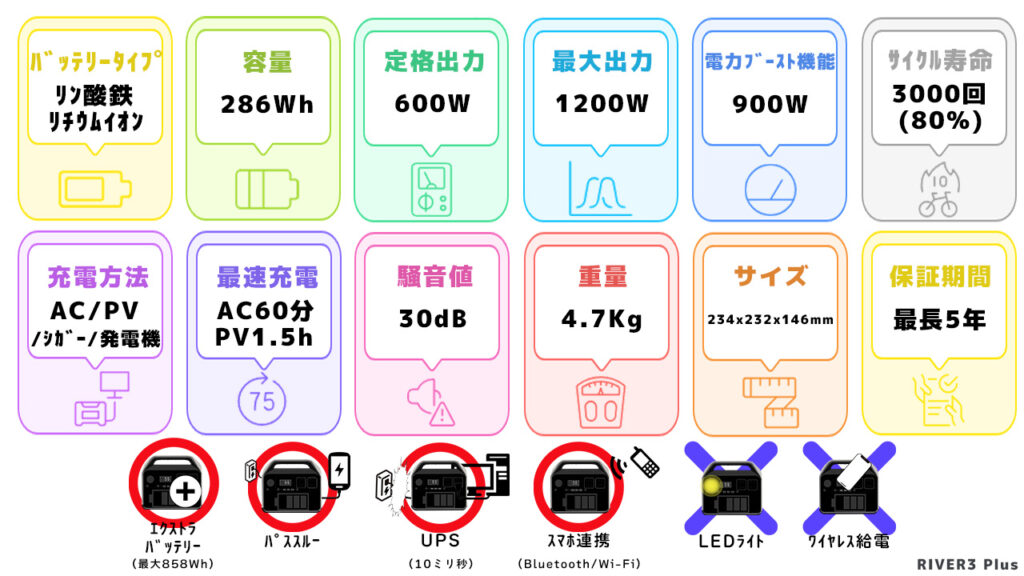 (引用元:EcoFlow公式サイト RIVER3 Plus商品ページ)